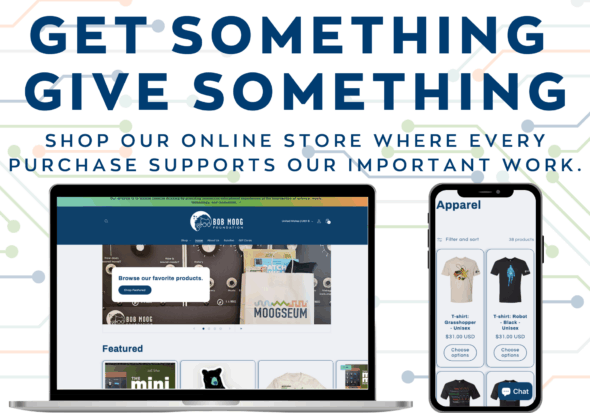 Sign up for our newsletter and be first to receive updates about our three main projects, Dr. Bob's SoundSchool, the Moogseum, and the Bob Moog Foundation Archives, as well as many other activities, including our fundraising raffles for vintage synthesizers.
