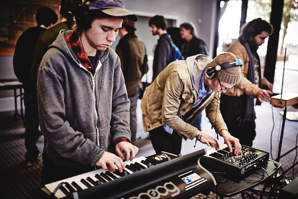 The Bob Moog Foundation was proud to share Dr. Bob’s Interactive Sonic Experience with the attendees of the Mountain Oasis Electronic Music Summit on the weekend of October 25-27th. The interactive experience provides people with a chance to explore the sonic landscape of electronic sound. Bob Moog Foundation volunteers hover nearby to answer questions and provide information. The walls are lined with our Synthesis Fundamentals posters, shedding light on the parameters of synthesis for those who haven’t been exposed to it in the past. By offering this setup at festivals, we aspire to ignite people’s creativity and interest in sound as a realm for personal expression.