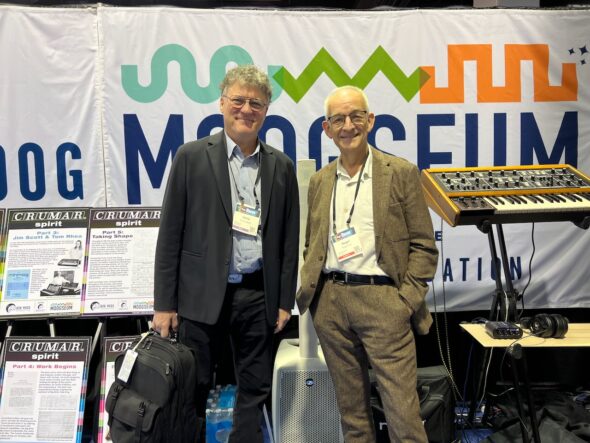 Synthplex founder Michael Lehmann Boddicker (Buckaroo Bonzai, Michael Jackson, Quincy Jones, The Bee Gees) and Moog historian Brian Kehew (The Moog Cookbook, Recording the Beatles), checking out the rare Crumar Spirit.