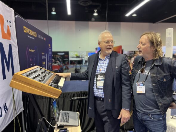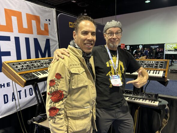 Board of Director member Chris Halaby (KVR) with legendary drum machine innovator Roger Linn.